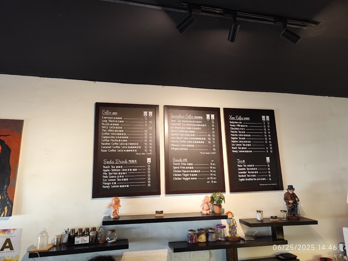 Khing Cafe (Beach Street) offers a thoughtfully crafted menu that reflects its cozy art café atmosphere. The selection combines simple café favorites with comforting drinks and delicate pastries, ideal for those moments when you want to slow down and savor your surroundings.