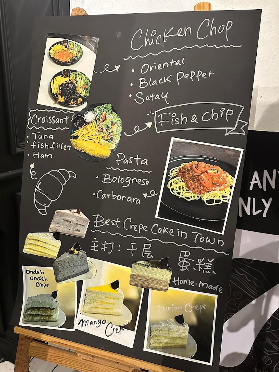 The menu features a variety of sweet and savory options, perfect for different times of the day. Mornings and afternoons often call for a slice of their Crepe Cake, Tiramisu Cake, or Durian Cake, paired with one of their signature coffee creations like the Rose Latte, Hazelnut Latte, or Okinawa Coffee Latte. For a light meal or casual bite, dishes such as the Oriental Chicken Chop and Carbonara Spaghetti offer satisfying flavors without rushing the experience.
